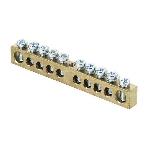 Шина PEN "ноль-земля" (6х9мм) 10 отверстий латунь крепеж по центру EKF PROxima